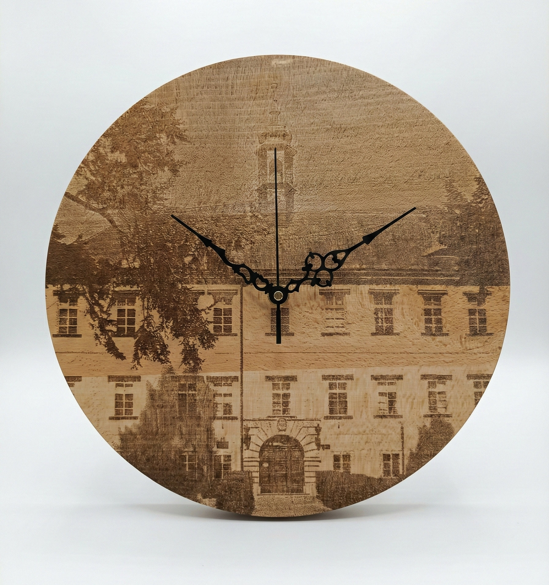 Nástěnné hodiny z masivního buku s motivem zámku v Kopidlně jsou originální dekorací i praktickým doplňkem do každého interiéru. Mají průměr 30 cm, tloušťku 16 mm a kvalitní tichý strojek na AA baterii, takže neruší ani v ložnici či pracovně. Povrch je 3× lakovaný a broušený pro hladký vzhled, vyšší odolnost a dlouhou životnost.